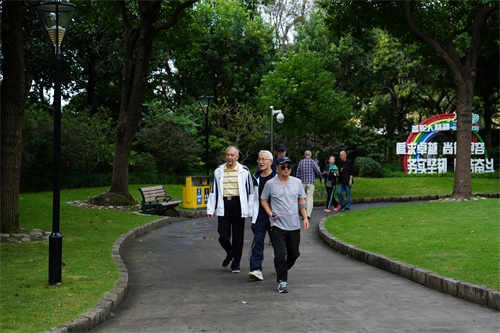 10月8日,在普陀区清涧公园内,风力也明显增大,风力有4~5级,不少树木都被吹得来回摇曳,天空里还是厚厚的乌云唱起了主角,虽然太阳偶有露脸,但是对气温提升作用并不明显。在园内的市民纷纷穿起长袖长裤,包裹得严严实实锻炼“保身价”。正在打太极的老奶奶打趣地说:“初秋的体感上有点阴冷的,锻炼出汗后第一时间要多穿衣服,老年人要保身价,没感冒就是好事。”