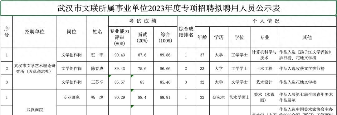 武汉市文联所属事业单位招聘榜上的"宇宙的尽头是考编"再度引发热议。据悉,青年作家班宇、陈春成、王苏辛榜上有名,成为武汉市文学艺术理论研究所专业技术人员的拟聘用者。他们是通过资格复审、考试、体检和考察合格的,这一消息让人震惊不已。此前,班宇、陈春成、王苏辛、刘雪婷作为知名的青年作家,一直备受瞩目。其中,班宇1986年出生,已出版多部小说,而陈春成更是获得了亚洲周刊年度十大小说、第四届宝珀理想国文学奖首奖等殊荣。著名作家余华更是高度评价了陈春成的文学才华。这样一群备受认可的作家,跻身于文学艺术理论研究所的招聘名单,引发了社会的广泛关注和热议。对于这样的人才流向,你怎么看?