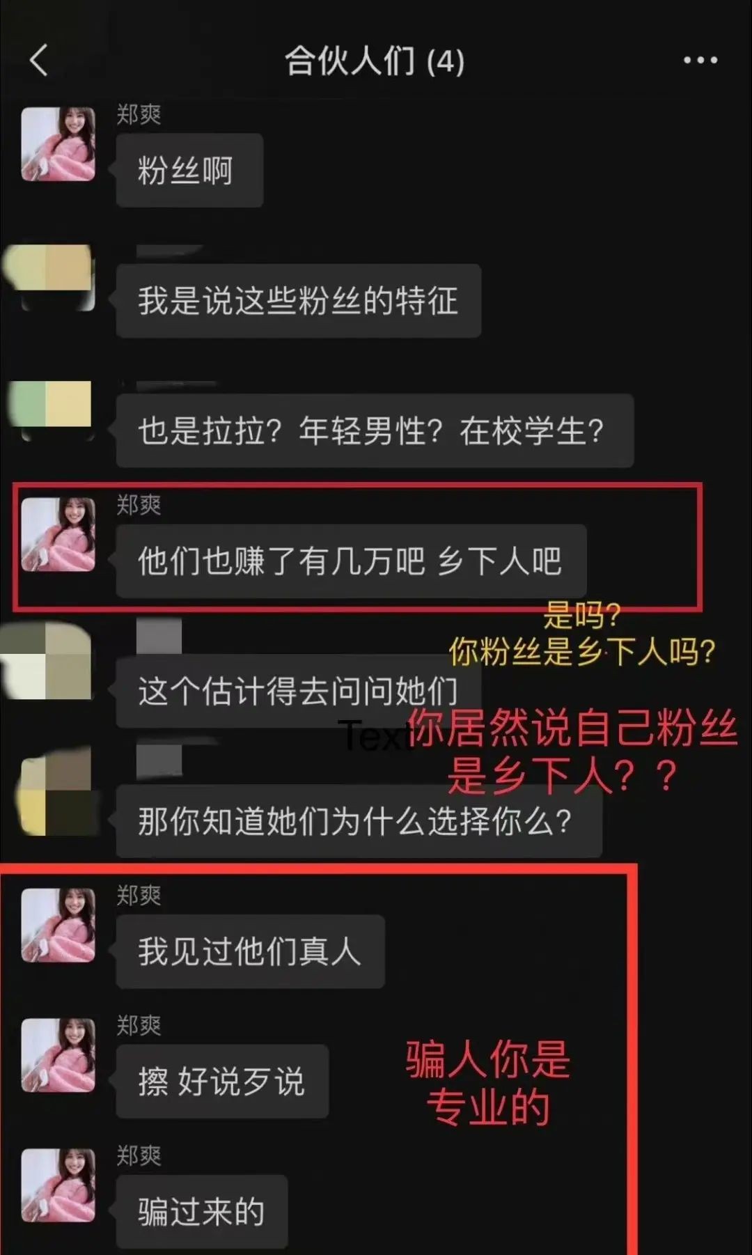 不过,郑爽对于粉丝的态度却依然不尽人意,她不仅声称那些粉丝通过卖自己的周边赚了不少,还嘲笑他们是“乡下人”,完全是将他们当成提升自己人气的“工具人”。