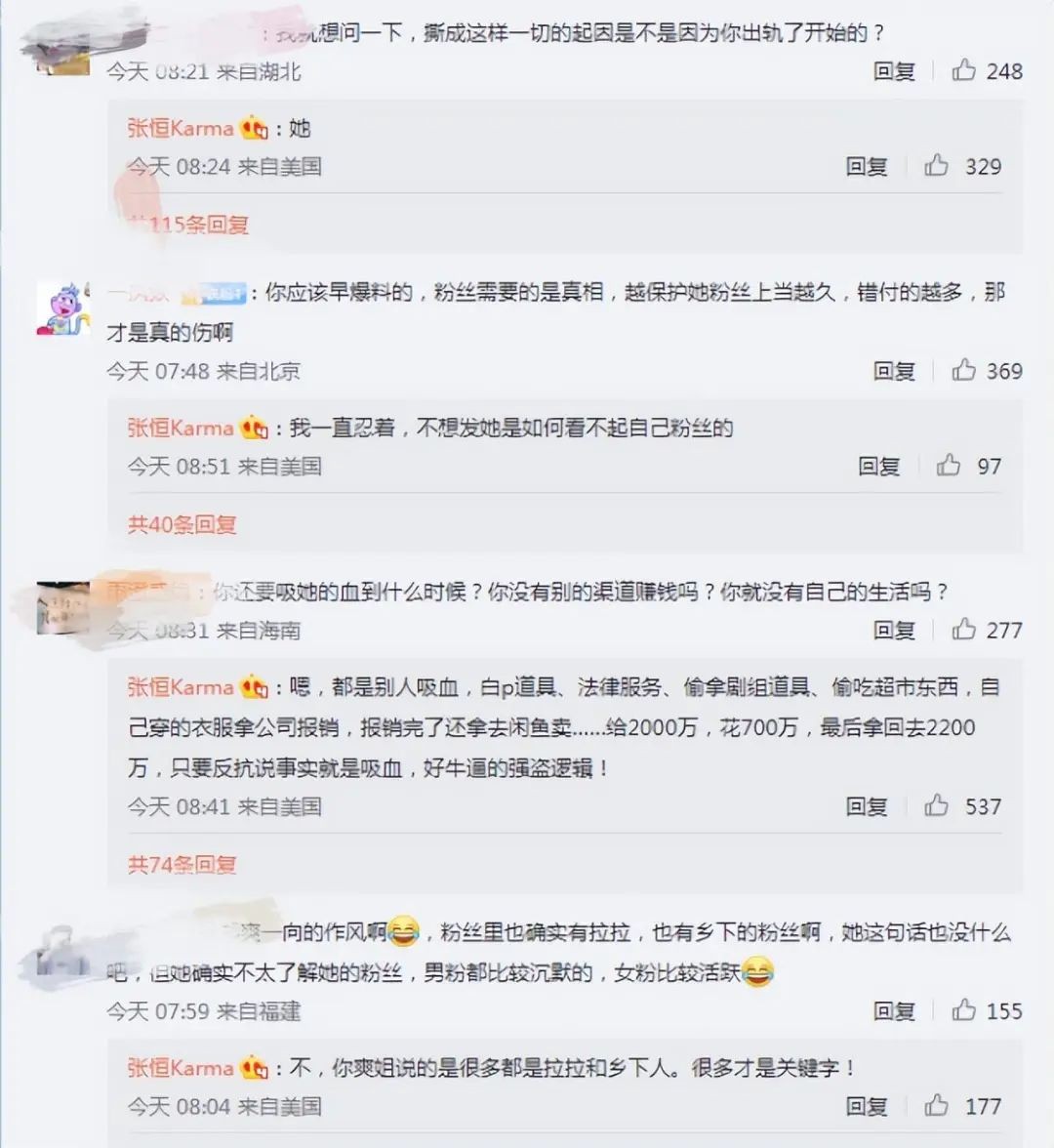 也有网友质问张恒,他和郑爽撕成这样,是不是从他出轨开始,张恒却回答是因为郑爽先出轨开始。