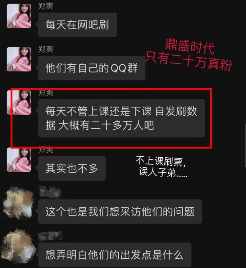 郑爽的粉丝就像一个小团体一般,有着自己的qq群,而且团结一致,不管上课下课都会自发刷数据,甚至还为了支持自己的偶像跑到网吧刷。