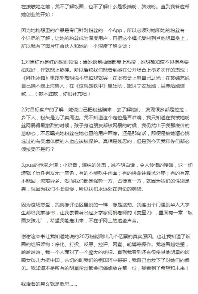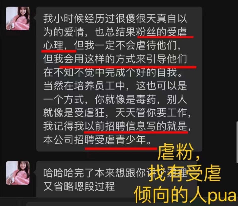 郑爽正是以为自己洞察了这个心理,所以一直用这个方式去引导粉丝,让他们拥有受虐倾向,自愿的让她们为自己工作。