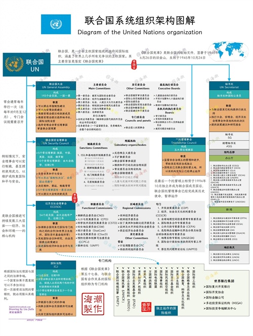 联合国安全理事会:负责维护国际和平与安全。安理会由15个成员国组成,其中5个是常任理事国(美国、英国、法国、俄罗斯、中国),它们拥有一票否决权,另外10个非常任理事国。非常任理事国由联合国大会选举产生,任期两年。安理会和联合国大会最不一样的地方在于,安理会有权采取强制性措施,安理会的决议所有会员国都必须遵守——包括经济制裁和军事干预。(安理会决议代表了五大国的共识,不遵守就是挑战地球五大国权威,后果相当严重)。