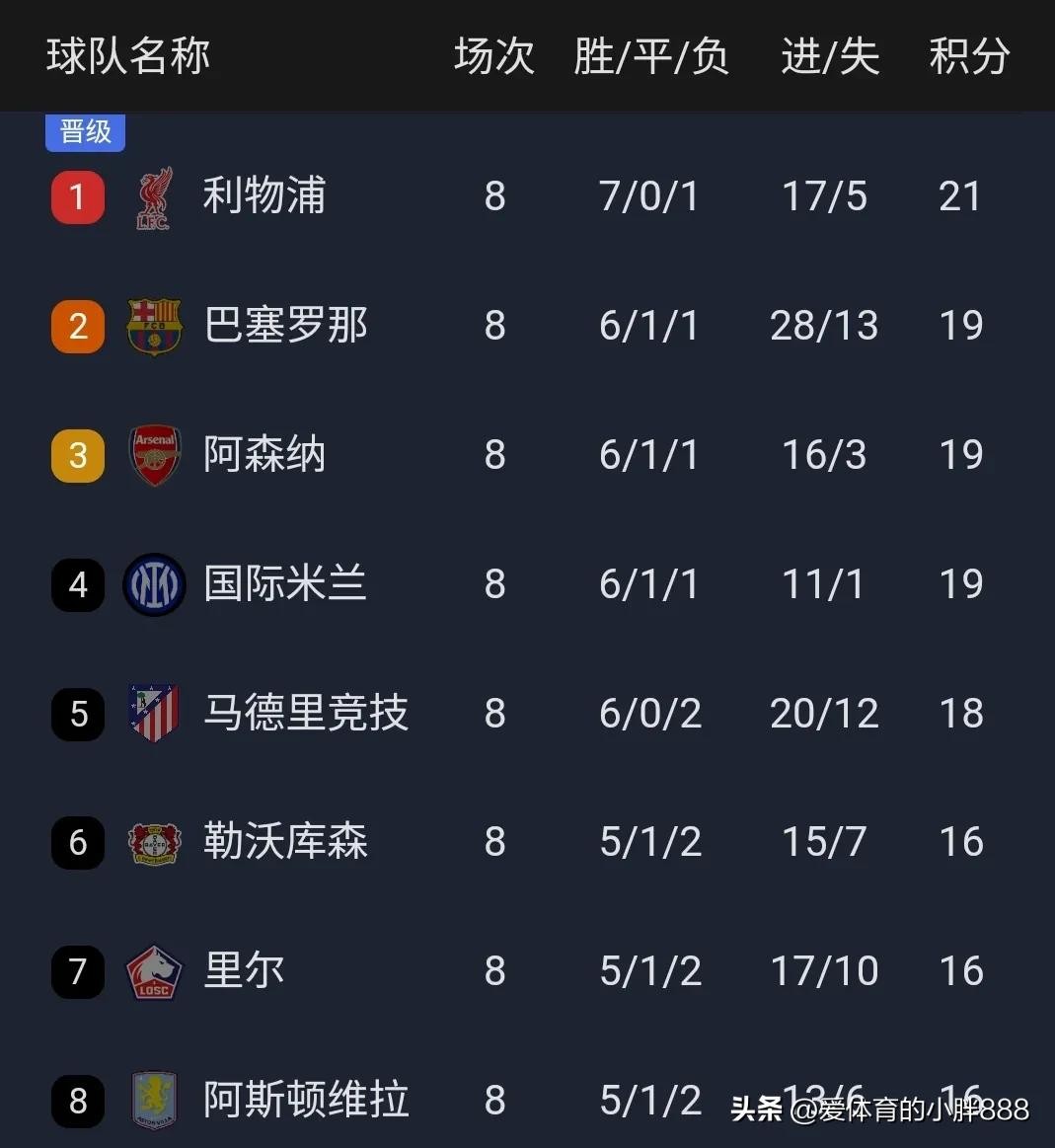 本次欧冠直接晋级的球队为利物浦、巴萨罗那、阿森纳、国际米兰、马德里竞技、勒沃库森、里尔、阿斯顿维拉!