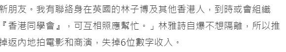 关于去往英国以后的打算,林雅诗也在采访中爆出她决定在英国打理生意,还打算去国外再跟林子博相见,原来林子博也已经定居英国,他之前说自己去往英国是为了子女的教育问题,让子女能够读更好的学校。记者继续询问她,对感情还有没有什么期待呢?林雅诗则表示说有缘分还会再恋爱,但是这段时间不想拍拖了,实在是有些畏惧了。看来,一段感情里面的伤痛确实会让人产生逃避的想法,希望她以后能够过得好一点吧。