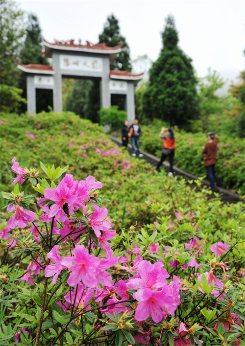 十万亩竹海气势磅礴,一波绿浪随风摇曳。登阳岭之巅,十万亩竹海尽收眼底,放眼四周,云雾缭绕,犹如置身仙境一般。每年四月底五月初,各色杜鹃漫山绽放,有粉色、红色、紫色、白色,姹紫嫣红,又有“杜鹃百花园”之称。冬日雾凇来临,阳岭之巅“忽如一夜春风来,千树万树梨花开”,杜鹃开银花,松树绽银菊,把人们带入如诗如画的仙境。