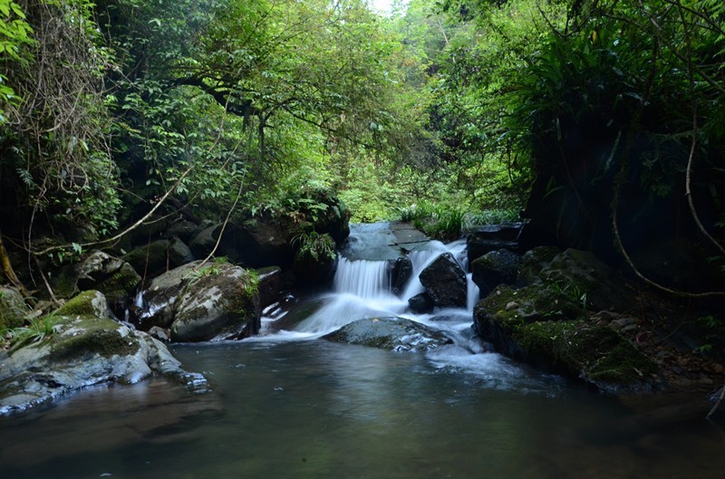 阳明湖水体清澈灵动,由阳岭山泉水汇聚而成,绕湖而行,心静修生。兰溪沟谷雨林曲径通幽,古木参天,苍藤缭绕,溪水潺潺,蛙声鸣鸣,沿溪漫步,热带、亚热带景观尽览眼中。兰溪瀑布落差达20.6米,是景区中空气负离子含量最高的区域,是洗肺最佳去处。