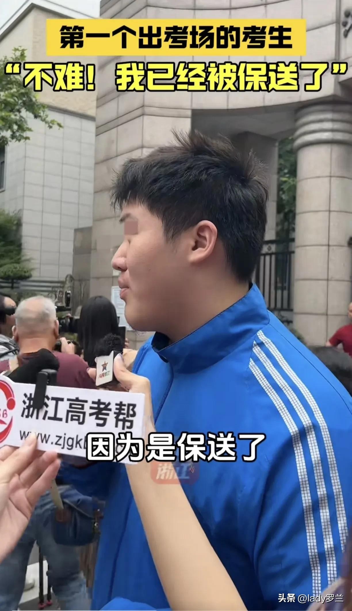 这类考生都是被提前录取的,只是来体验高考,甚至没有答完题就出来了,被问及题目难不难时,很凡尔赛的来句;不难,我已经被保送了!