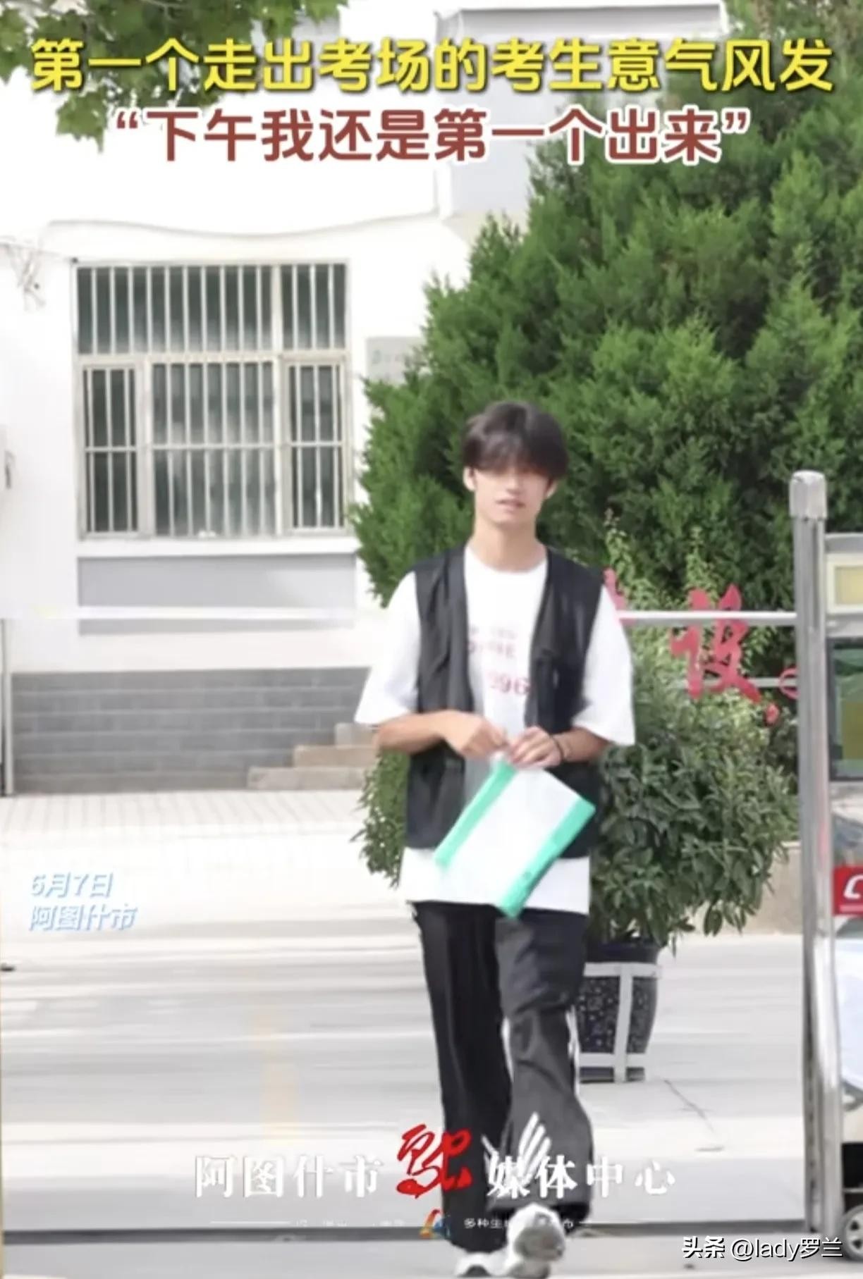 下面这位新疆考生第一个走出考场,被记者问到考的怎么样时,说:就正常发挥嘛!