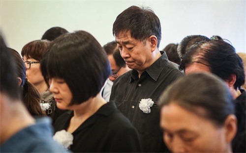 在遗体告别仪式现场,童道明先生追悼者的长队排到门外,不时有人啜泣。