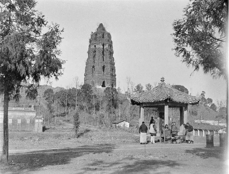 明嘉靖年间(1522-1566),倭寇围困杭州城,纵火焚烧了雷峰塔,灾后的古塔仅剩砖砌塔身,通体赤红,一派苍凉、凝重风貌。