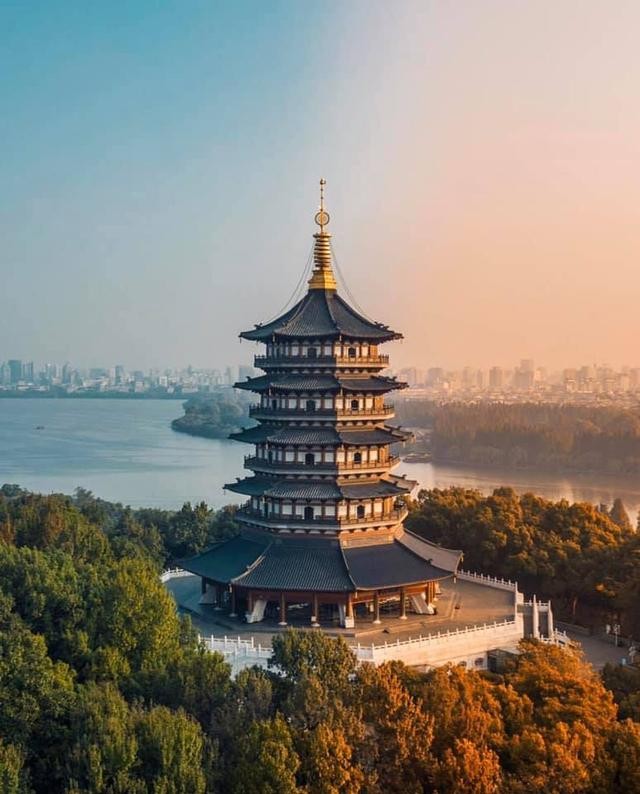 雷峰塔,又名皇妃塔、西关砖塔,位于杭州市西湖风景区南岸夕照山的雷峰上。雷峰塔初建于公元977年,是吴越忠懿王钱弘俶为供奉佛螺髻发舍利而建。相传为庆祝宠妃黄氏得子而建,所以命名为“皇妃塔”。后来,因其所在的山峰叫“雷峰”,而逐渐被人们称为“雷峰塔”。
