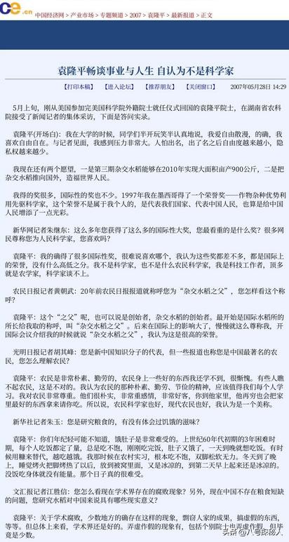 【信息来源:百度百科-袁隆平-人物评价、中国经济网2007年5月28日发布