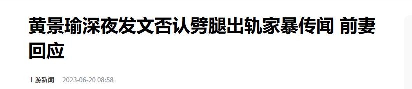 上游新闻:黄景瑜深夜发文否认劈腿出轨家暴传闻 前妻回应