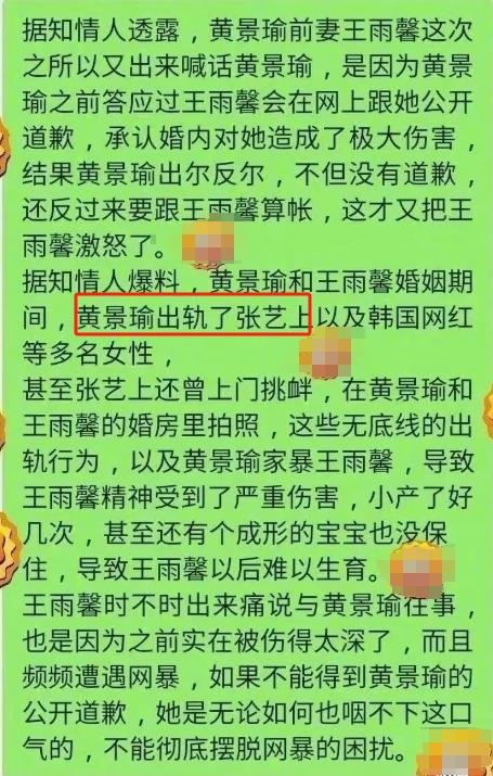 没错,王雨馨不仅爆出了自己和黄景瑜之间的过往,还直接撕开了黄景瑜的遮羞布。