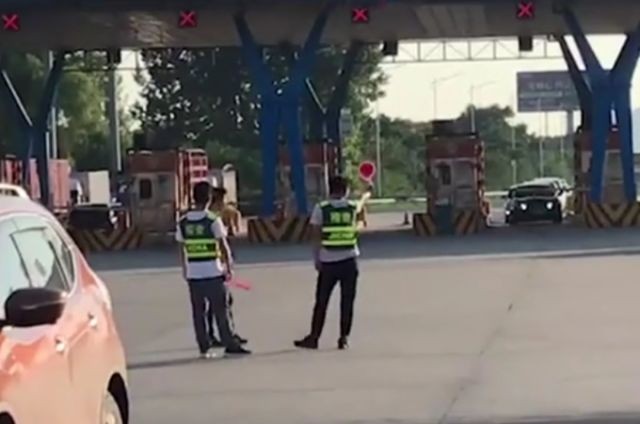 有过路车主见到后起初还以为是交警和交通执法人员在进行例行检查...