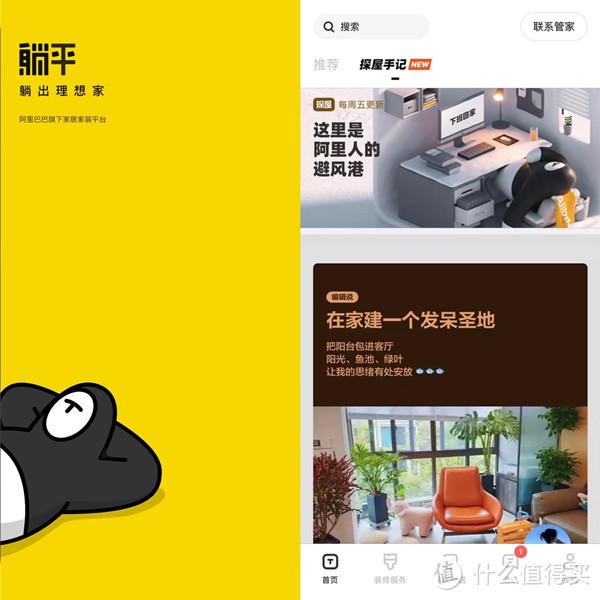 这个躺平不是我们日常所说的躺平,这个其实是阿里巴巴出品的家居家装平台。在我看来,这个APP就是家居类“小H书”。