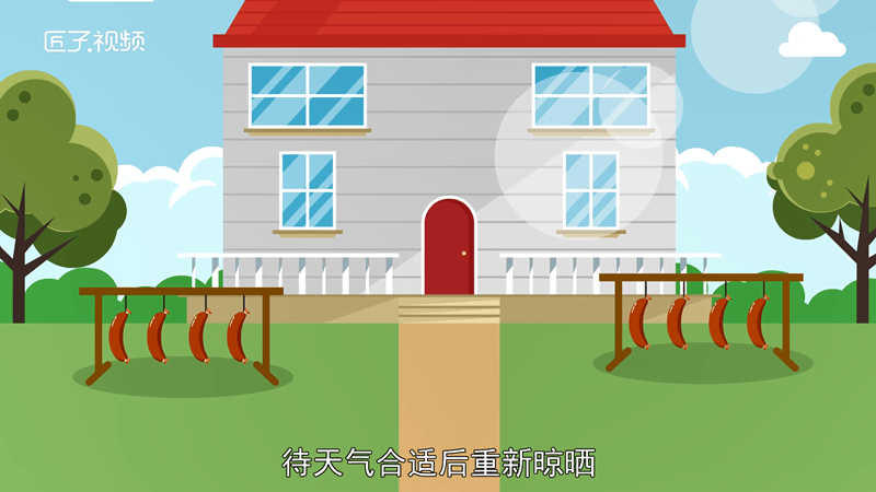 晒香肠如果遇上下雨天,还没晾干的香肠可能会变酸。这时可以将香肠暂时放在冰箱里,待天气合适后重新晾晒。如果香肠淋雨了可以用干净的热毛巾把香肠擦干,放置通风好的地方,等天气好在拿出去晾晒就可以啦。