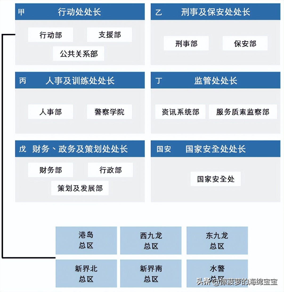 警务处高级助理处长:担任三位警务处副处长领导之下的六个部门主管。