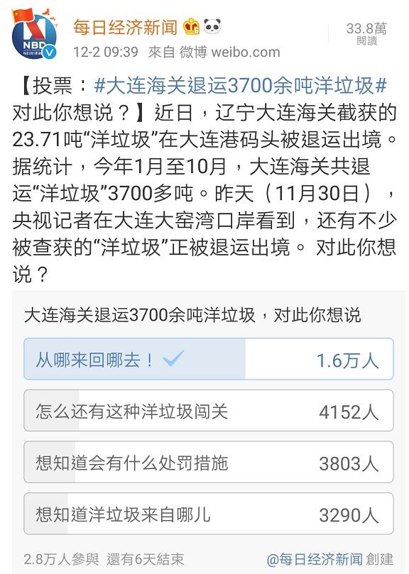 据统计,今年1月至10月,大连海关共退运“洋垃圾”3700多吨。这项数据,也让众多网友纷纷“拍手叫好”。