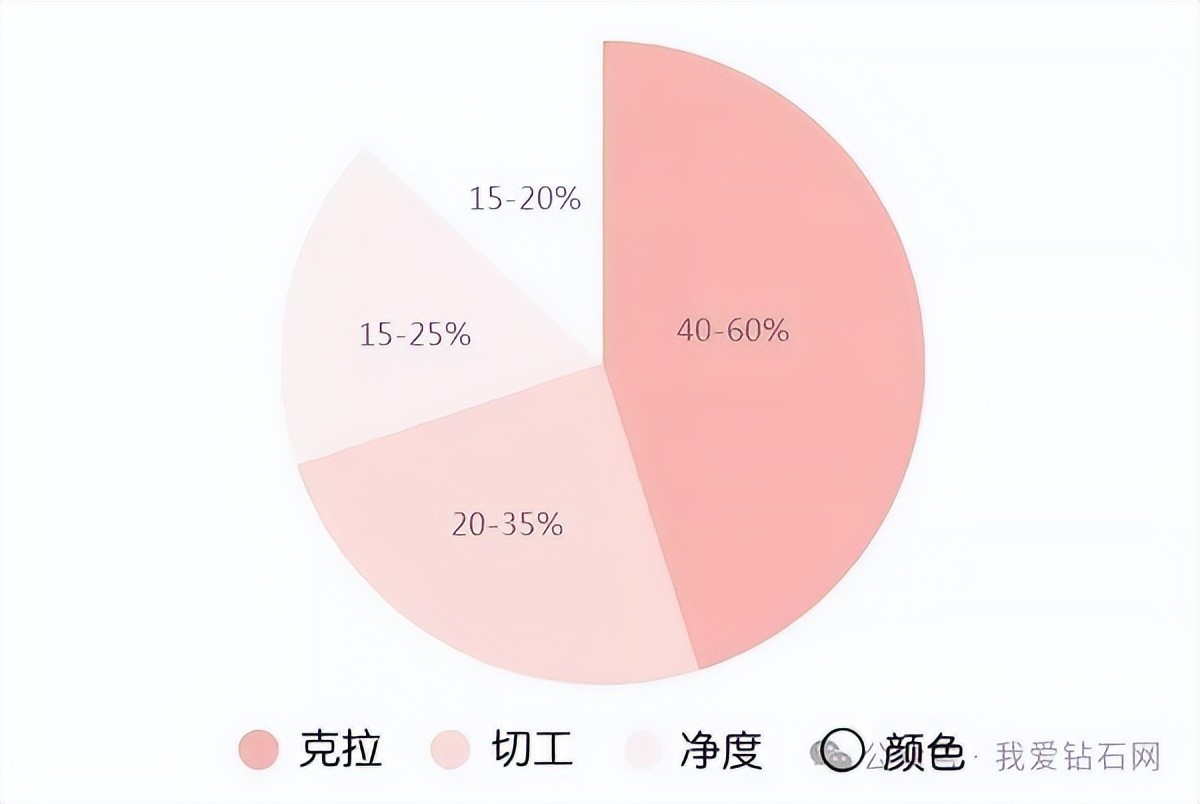 按照对钻石价格的影响程度,钻石4C的重要程度排名为:重量>切工>颜色>净度。