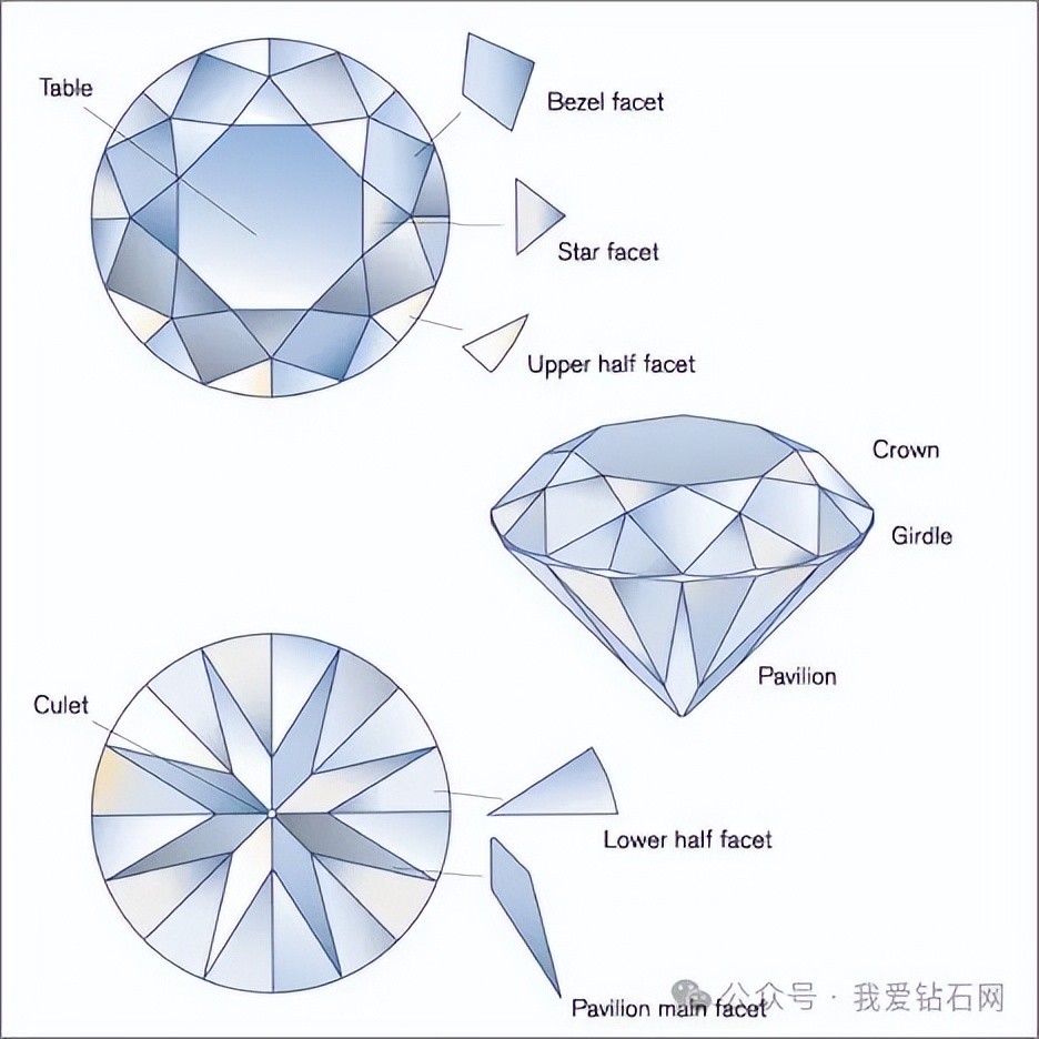 详细的钻石切工数据还包括:台宽比、冠高比、腰厚比、亭深比、全深比、星刻面长度比、下腰刻面长度比、冠角、亭角。