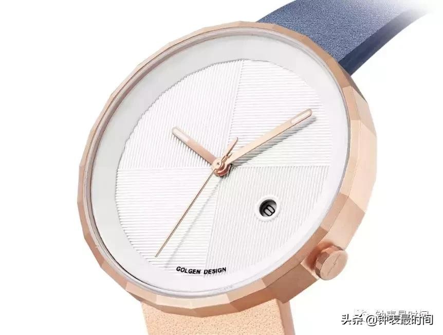 这款表盘看似简约,但设计上却很有层次感。首次大胆运用将表盘分为四等分,同时为了平衡美感,又采用了对角纹理一致,在整个观感上具有非常鲜明的时尚潮流感。指针简约没有任何花俏的设计,包括水滴式的日历窗。