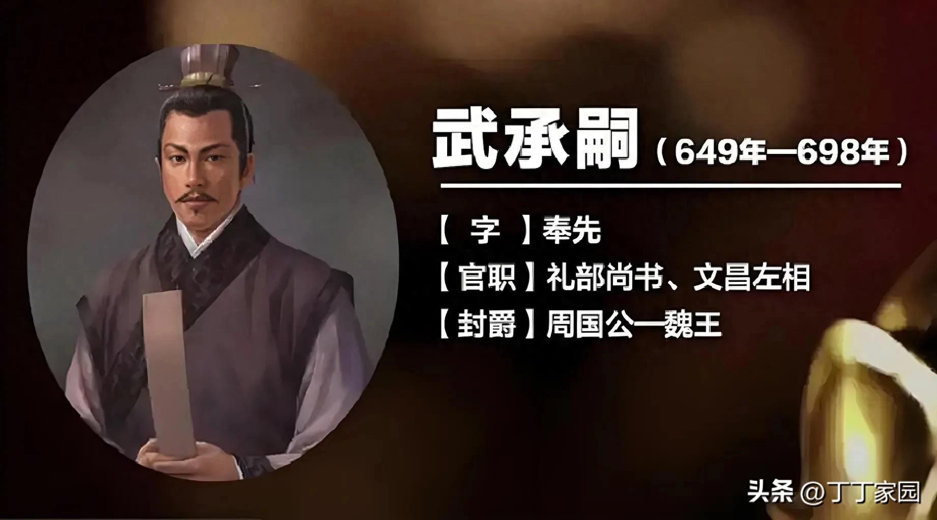 武承嗣,出生于一个显赫的家庭,父亲武元爽和伯父武元庆都曾在唐朝担任重要职务。随着武则天的崛起,武承嗣也获得了许多机会。武则天成为皇后后,便开始整顿武家,先是贬杀承嗣的父亲和伯父,随后立武承嗣为礼部尚书,开始参与政事。垂拱元年(685年),他被任命为春官尚书,成为凤阁鸾台平章事,地位进一步提升。