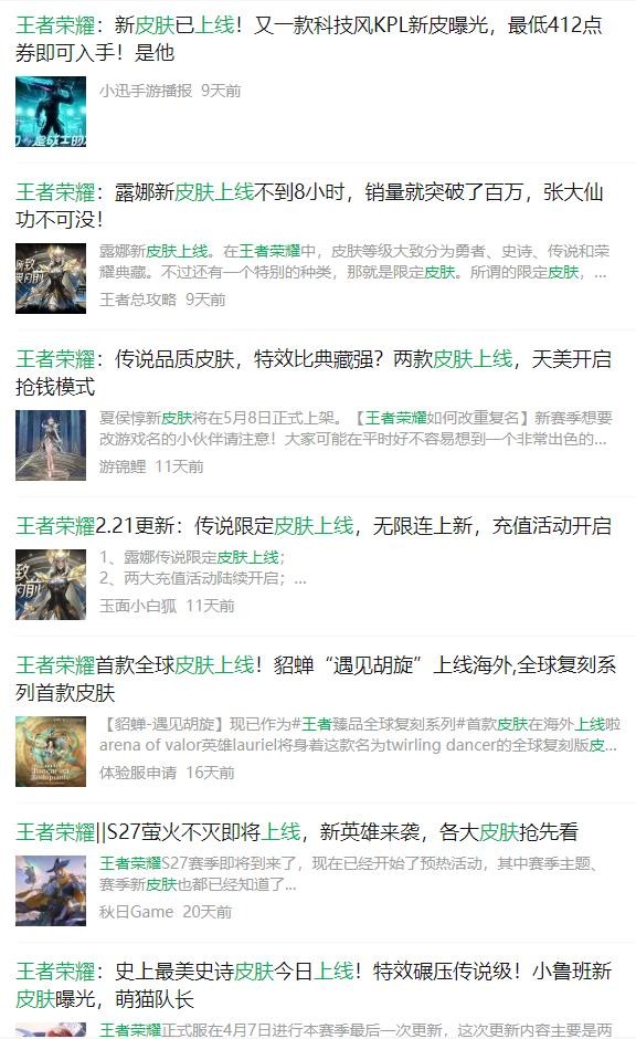 新皮肤上线,是增加游戏收入的重要来源。而今年王者荣耀的皮肤,比以往任何时候都来得更快一些。