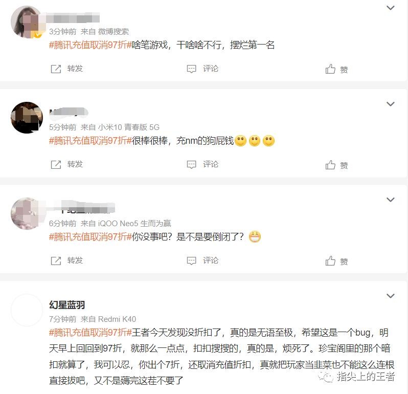 取消优惠的新闻一出,让很多用户难以接受。腾讯是在没有任何通知的情况下进行的,很多用户在不知情的情况下充了钱。