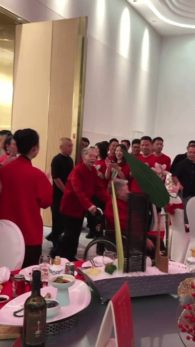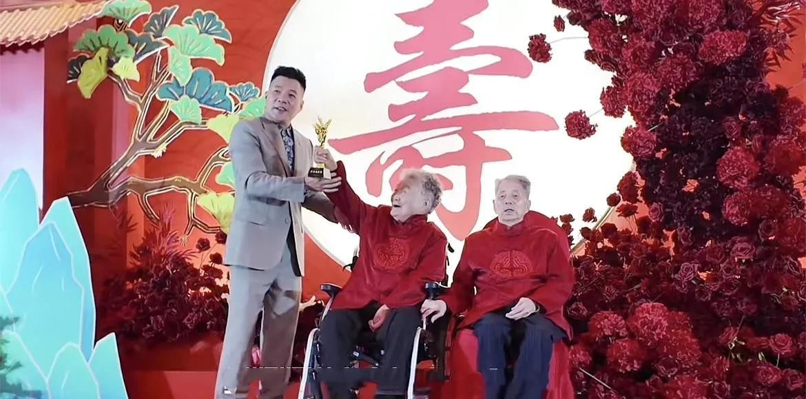 仪式开始后,除了公司员工表演自制的节目之外,还有轮流上台为老寿星祝寿的环节,而他们也会收到寿星发放的红包,整个流程看起来温馨又感人。