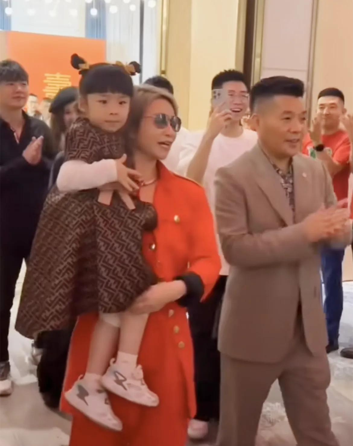 当晚宴席的花费也不低,每桌标配海鲜和茅台,估计价位在5000元左右。与上次儿子的订婚宴相比,这次老板娘李丽萍打扮的颇为低调,只着一身应景的红色套装亮相。