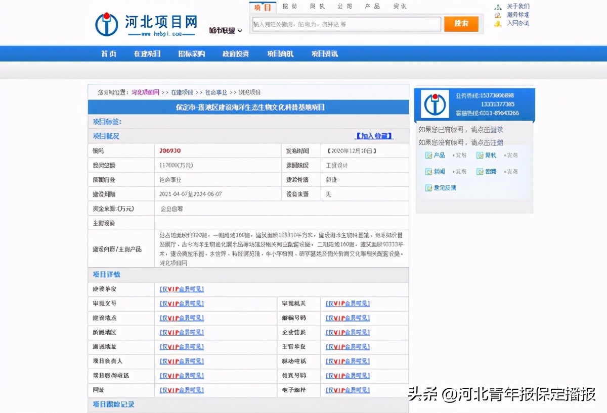 具体的项目详情均被设置为仅vip会员可见,网页信息显示,该项目开发单位为保定锦澜润和旅游开发有限公司。