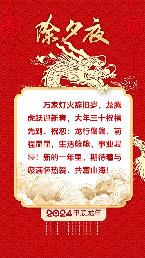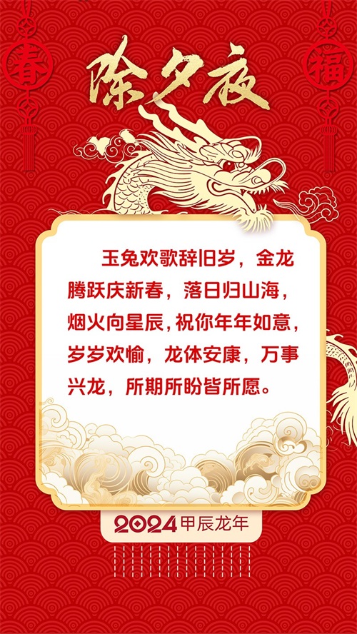 我们举杯庆祝除夕,大年三十,最好的愿望送给大家,龙行龘龘,新年平安!
