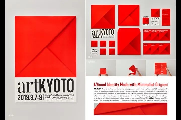 日本电通广告的京都分公司为京都艺术节打造了视觉形象。电通以日本传统工艺——折纸(origami)为概念,仅用一张方纸,以简约而抽象的造型与京都艺术的理念想契合。