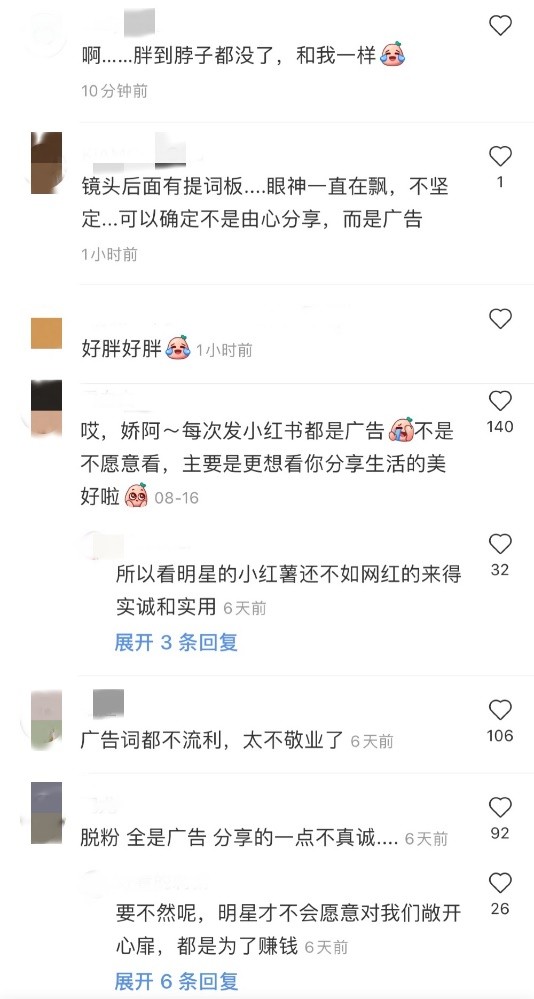 网友对此有些不满,认为她的平台几乎都是广告,并不是在真诚与大家分享生活。而且在推广之前连功课也不错,只是照着读,还都读不利索,未免太没诚意。