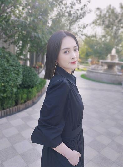 照片中的她一袭黑裙,还有半身近距离拍摄的角度,阿娇直视镜头眼神坚定且温柔,看起来对颜值很有自信。