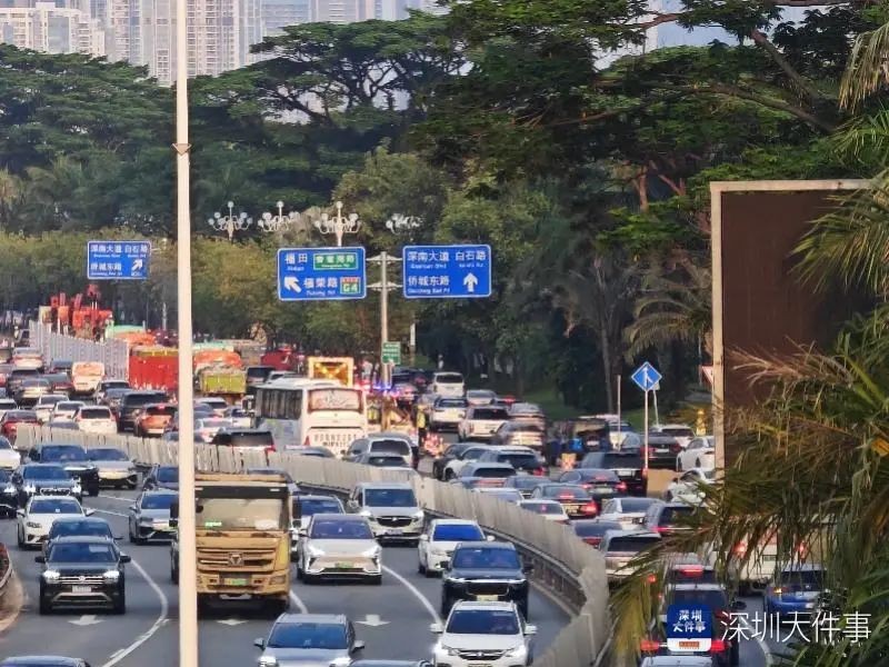 当天临近晚高峰时段,南都记者在滨海大道深圳湾海韵公园路段看到,东行的7条车道目前已有5条恢复通车,路面车流量较大,整体呈现缓行状态。