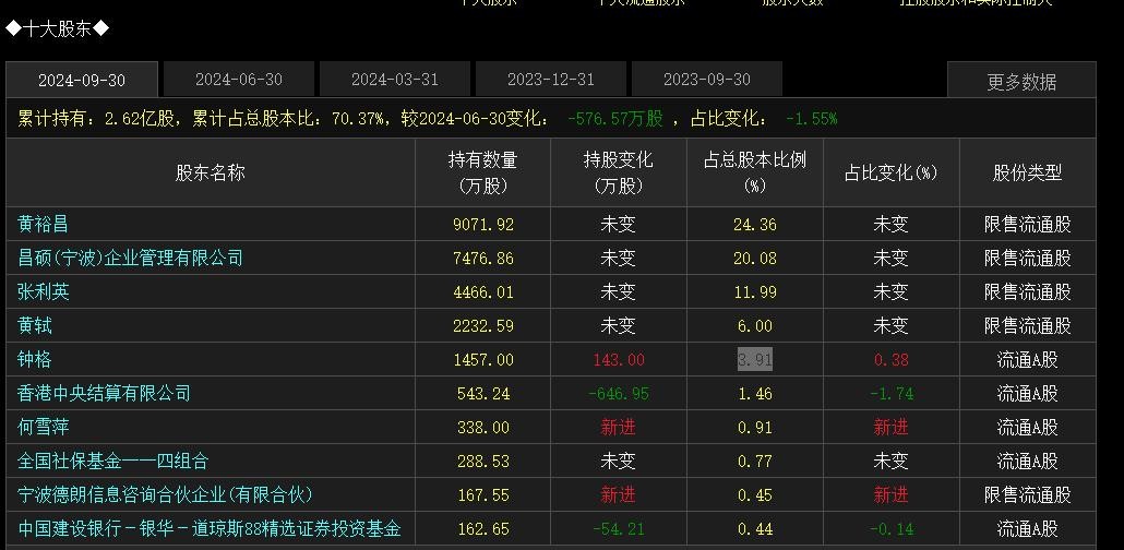 大曝光:十亿女王何雪萍2024年3季度重仓股票