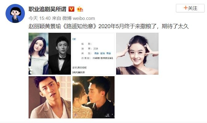 赵丽颖黄景瑜《路遥知他意》将播?粉丝:爱豆什么时候拍过这剧?