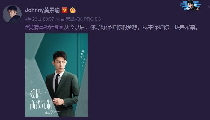 而黄景瑜,5月份倒的确是有一部待播剧,那就是他与迪丽热巴主演的《爱情高级定制》。作为主演,黄景瑜也开始营业为这部剧做宣传。
