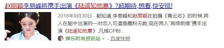这消息一经爆出,就让人万分惊诧。话说,《陆遥知他意》这部青春偶像剧,在2018年就曾爆出开拍消息,当时宣传的女主角就是赵丽颖,而男主角,当时宣传的时候还是李易峰。