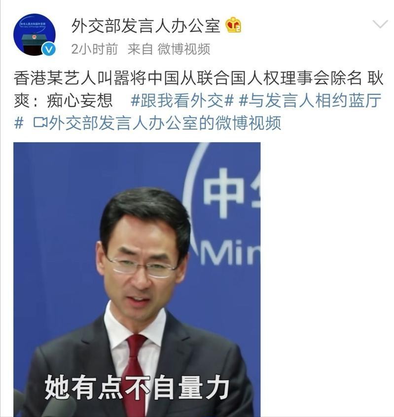 最后还诞生了要求联合国把中国从人权理事会除名这个名场面,何韵诗的发言也是把我国的外交官耿爽逗笑了。