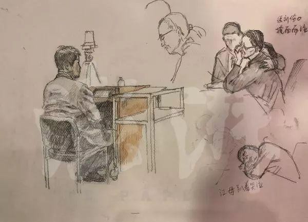 11日下午庭审现场速写。澎湃新闻记者李媛 图