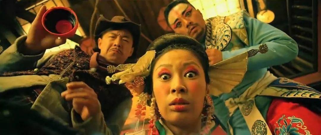 《厨子戏子痞子》这部电影就具有浓厚的离情色彩,是一个戏中戏式的套层式结构,而这种套层结构的吊诡之处在于,多增加一层叙事之后,观众对片中演员的做戏反而更有了亲近感,感觉上是在看片中的四位抗日奇侠在做戏给日本人看,而忘了在这外面还有一层是四个演员在演电影给观众看。
