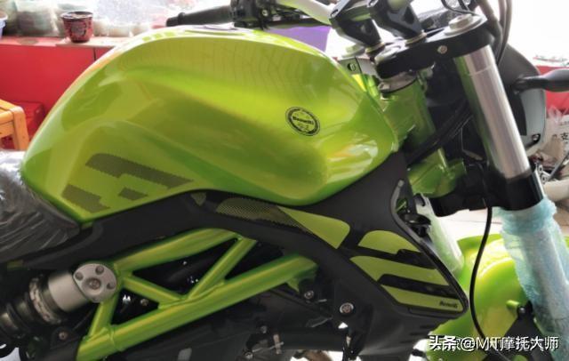 从外观设计上,我们可以看到这款车全用了全新的配色,今天我们要详解的也是比较少见的荧光绿配色,整车外观颜色看起来十分新颖,也是符合目前的时尚主流。乍一看还有些和川崎的小忍者的设计有些相似,不过绿色表现比较浅。
