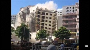 记者留意到,网上还流传着另外一则小视频,一栋10多层高的大楼整体倒塌,在大楼下有一辆挖掘车,有网友称这是发生在河源的在建楼盘倒塌事件。记者跟雅居乐楼盘坍塌现场照片进行比对,该视频并非发生在雅居乐工地。