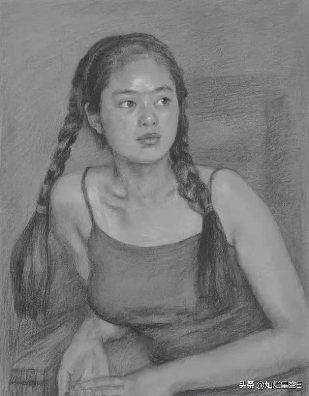 杨飞云的素描作品常常展现出对古典美学的深深敬意和精准把握。他以细腻而精准的线条,勾勒出人物的轮廓与形态,每一笔都仿佛蕴含着无尽的情感与思考。