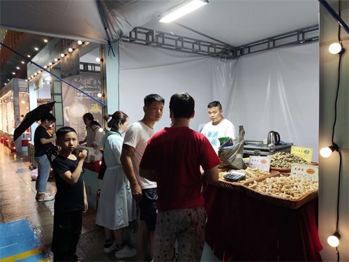 当晚,黄石港万达广场人潮涌动,金花大酒店、楚乡厨艺、楚江南、劲酒、珍珠果米酒、黄石港饼等几十个黄石本地美食品牌在广场前一字排开,摊位前坐满了品尝美食的食客。不远处,“欢购荆楚·约惠黄石”的主会场正在举行精彩的文艺表演,让市民既饱口福又饱眼福。