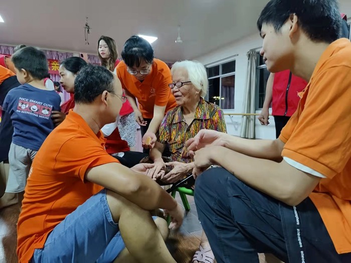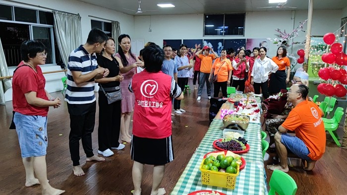 9月22日晚上,玉林市红豆义工协会的义工们办起敬老祝寿交流活动,为一名平时探访的孤寡老人庆祝百岁生日。